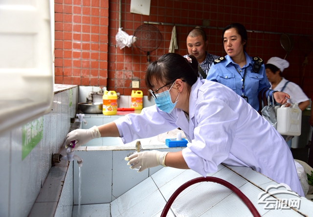 縣衛生計生監督執法局工作人員先后來到云陽中山外國語中學、云陽中學、肖家灣水廠等地,對配備的水凈化設施設備、儲水水箱清洗消毒等方面進行了監督檢查,并針對存在的問題下達了監督意見書??h疾病預防控制中心檢驗員分別對水源水、末梢水、凈化過的水進行采樣檢測。同時,工作人員還來到學生宿舍、食堂等地,現場檢查宿舍衛生以及傳染病防控工作。