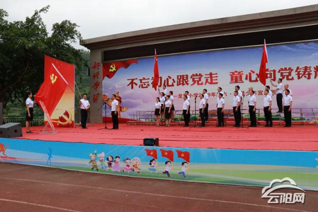 云陽網訊(記者 丁齊 通訊員 梁先寶)“我自愿加入中國共產黨,擁護黨的綱領,遵守黨的章程……”5月28日,為慶祝建黨98周年,建國70周年,龍角小學開展“誓詞傳遞”活動,面對黨旗,全體黨員舉起右拳,重溫入黨誓詞。
