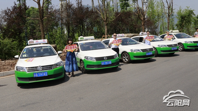 云陽網訊(記者 王彬彬)6月3日,在濱江大道上,鵬程出租車正在貼“愛心助考”的標志,這二十輛出租車正是云陽鵬程出租公司的高考直通車。
