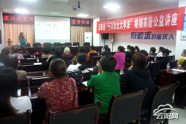 云陽網訊(記者 陳愛玲)近日,縣婦聯在青龍街道濱江社區舉辦婚姻家庭公益講座,為社區群眾宣傳婚姻家庭法律知識。