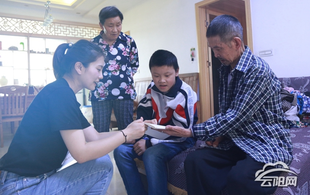 臨走的時(shí)候,稅老師不僅會給小玲薇布置復(fù)習(xí)、看書的作業(yè),還會給家長布置康復(fù)訓(xùn)練的作業(yè)。目前,玲薇已經(jīng)擁有了小學(xué)四年級的識字量,可以自己看一些簡單的故事書,身體也有好轉(zhuǎn),可以扶著墻壁走上幾步。