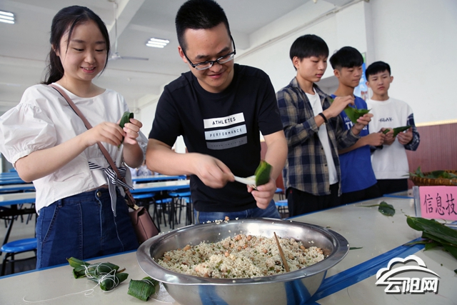 當日,正值端午傳統佳節,職教中心針對不能回家的學生150余名開展“濃情端午·與愛同行”關愛留守學生活動。學校部分黨員、教師代表等與留守在學校的學生一起包粽子,過端午節,給留守學生講解端午的由來和習俗。