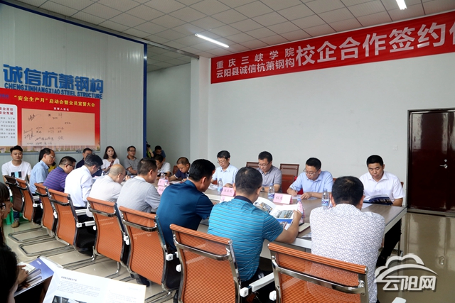 云陽網訊(記者 陳愛玲)6月11日,重慶三峽學院與云陽縣誠信杭蕭鋼結構股份有限公司舉行校企合作簽約儀式,積極探索產學研合作新模式。