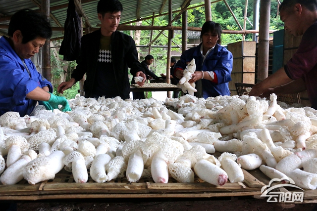桑坪鎮從2012年開始人工培植竹蓀,如今,竹蓀已成為當地的特色產業?!澳壳?,鎮里通過招商引資,引進企業發展竹蓀320畝,一畝可采摘干竹蓀150斤左右,按市場價300/斤計算,產值有1000萬多元。同時,企業還解決了1.3萬人次的就業。下一步,我們還將繼續發展竹蓀150畝?!痹撴傁嚓P負責人說。