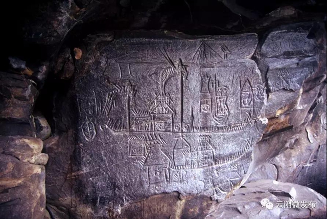 老一輩的盤石人還是習慣把盤石叫作“盤沱”。枯水季節,江水褪去,老街下面就會呈現出一片巨大的沙灘。溯江而上,人們就會到達天然的游樂場——石板林。石板林依山而出、蜿蜒十數里,積石如山、亂石穿空,如巨龜出水、如猛獸下山。更有一石突出江心,形似牛尾,上有巖畫,人稱“牛尾石”。據資料記載,石上巖畫為舊石器時代先民所作,刻畫打漁、狩獵等場景,生動還原了三千年前鹽水女神部落時期的生活場景。站上牛尾石,對岸的下巖寺清晰可見。隔江相望,大江東去,梵唄傳聲,鐘魚遂響、猶在耳聞。爬上鹽罐石,以石敲打洞壁,鏘然有聲,洞內呼喚,如喇叭傳音,傳聲久遠,縷縷不絕。