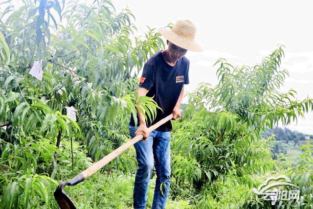 眼前這位看似瘦小的青年杜小兵,原來在上海一家巴士公司上班,2015年響應村委的創業號召,帶著對家人的思念,回到水口鎮注冊農業公司,流轉閑置土地種植黃桃,目前已投產黃桃120余畝。