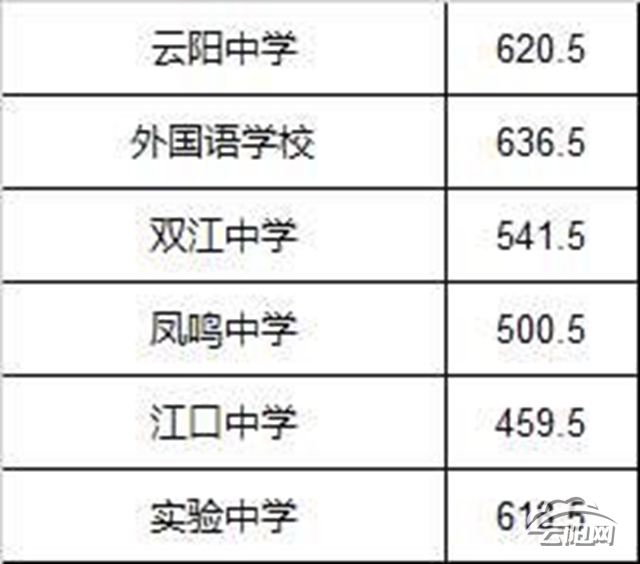 云陽網(wǎng)訊(記者 王彬彬)6月24日,記者獲悉,云陽2019年中考錄取分?jǐn)?shù)線出爐,其中云陽中學(xué)錄取分?jǐn)?shù)線為620.5分;外國(guó)語中學(xué)錄取分?jǐn)?shù)線636.5分;云陽實(shí)驗(yàn)中學(xué)錄取分?jǐn)?shù)線618.5分;雙江中學(xué)錄取分?jǐn)?shù)線541.5分;鳳鳴中學(xué)錄取分?jǐn)?shù)線500.5分;江口中學(xué)錄取分?jǐn)?shù)線459.5分。