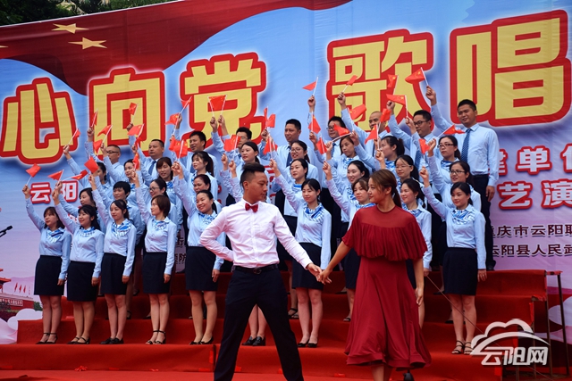 云陽(yáng)網(wǎng)訊(實(shí)習(xí)生 劉超)6月24日,青龍街道白云社區(qū)與轄區(qū)內(nèi)共駐共建單位聯(lián)合開展“民心向黨,歌唱祖國(guó)”白云社區(qū)慶祝建黨98周年暨建國(guó)70周年文藝演出,共千余人齊聚在白云社區(qū)彭詠梧廣場(chǎng)為黨和祖國(guó)慶生。