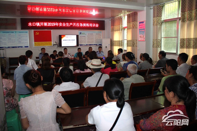 云陽網訊(記者 丁齊 通訊員 易守菊)為提高居民的消防意識,增強對滅火撲救的組織能力和疏散能力,6月26日,水口鎮組織60多名社區干部、居民群眾、企業代表在夜合社區開展2019年安全生產月應急演練培訓。