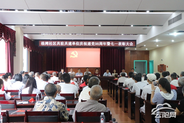 云陽網訊(記者 劉雪梅)為慶祝中國共產黨建黨98周年,進一步增強城市基層黨組織的凝聚力,7月1日,雙江街道桂灣社區召開共駐共建單位慶祝建黨98周年暨七一表彰大會。