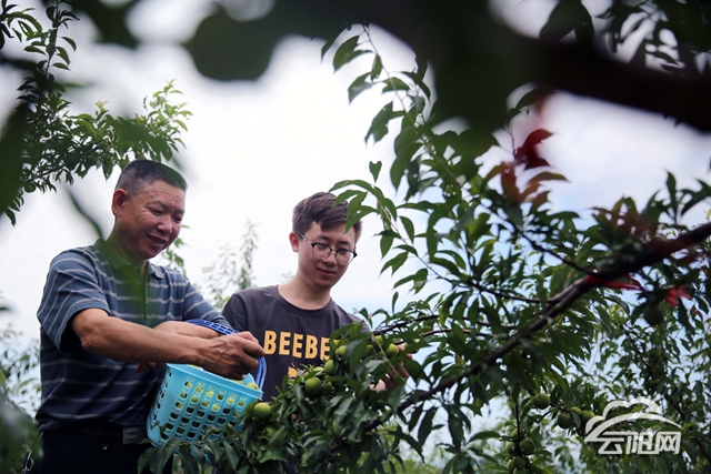 在高陽鎮老寨子山上,成片的李子樹一片蔥蘢,李子掛滿枝頭……當日,一些游客來到李子園采摘青脆李,享受著高山納涼和采摘樂趣。