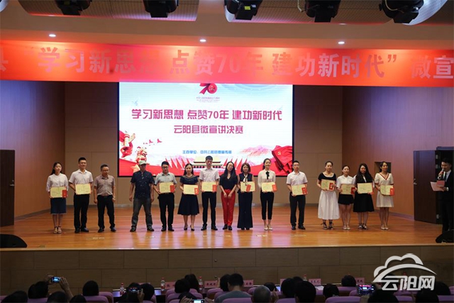 云陽網訊(記者 楊梅娜 劉雪梅)七十年崢嶸歲月,七十年砥礪奮進。七十年的滄桑巨變值得我們講述,七十年的輝煌成就值得我們點贊。7月12日,云陽舉行“學習新思想 點贊70年建功新時代”微宣講決賽。