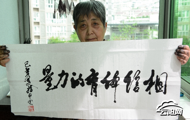 食指最常用也最好用,適合寫常規字。5根手指的指甲蓋長度和形態也不一,有長有短,有的為內凹,有的呈弧形。書寫時,何婆婆會先活動活動手指,然后在指甲上裹上纖維布,再蘸上墨,隨即時輕時重、時快時慢,猶如紙上曼舞。