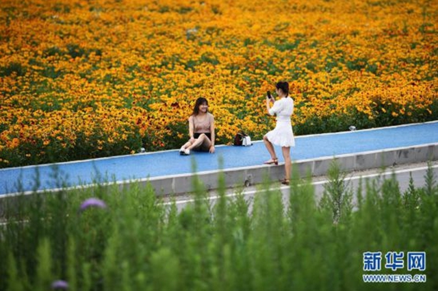7月30日,游客在云陽龍缸國家地質公園岐山草場留影。 云陽龍缸國家地質公園位于重慶市云陽縣東南隅,深處三峽庫區腹心,景區內地貌奇特、雄險俊秀、風景壯美。 新華社記者王全超攝