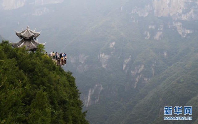 7月30日,游客在云陽龍缸國家地質公園游覽。 云陽龍缸國家地質公園位于重慶市云陽縣東南隅,深處三峽庫區腹心,景區內地貌奇特、雄險俊秀、風景壯美。 新華社記者王全超攝