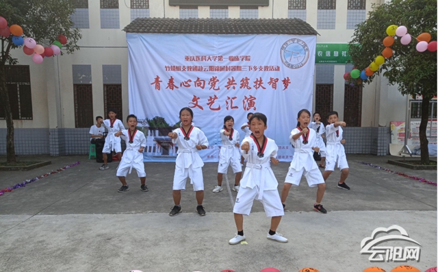 云陽網(wǎng)訊(記者 楊梅娜 通訊員 陳利)近日,重慶醫(yī)科大學(xué)第一團(tuán)總支學(xué)生會17名師生組成的支教團(tuán)隊(duì)在鳳鳴鎮(zhèn)錦屏村開展以“黨旗伴我心,青春走基層”為主題的支教活動。