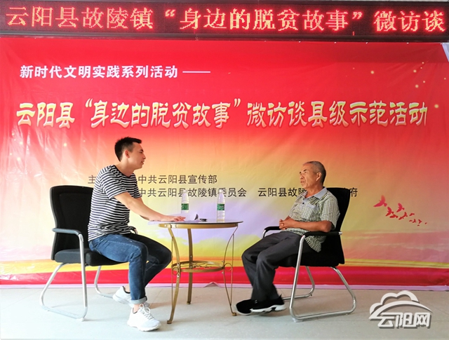 訪談活動邀請了故陵鎮三名自強不息戰貧窮的典型人物到寶興村會議室和群眾話家常、聊近況,分享他們的生產生活情況,講述他們不等不靠的脫貧致富故事。