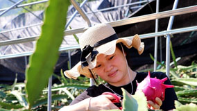 隨后,記者來到多集合公司的葡萄園,看見工人正在給葡萄疏果。該葡萄園目前有50余畝,栽種有夏黑、陽光玫瑰、金手指等9個葡萄品種,今年是第一年掛果,預計產量有3000斤左右。