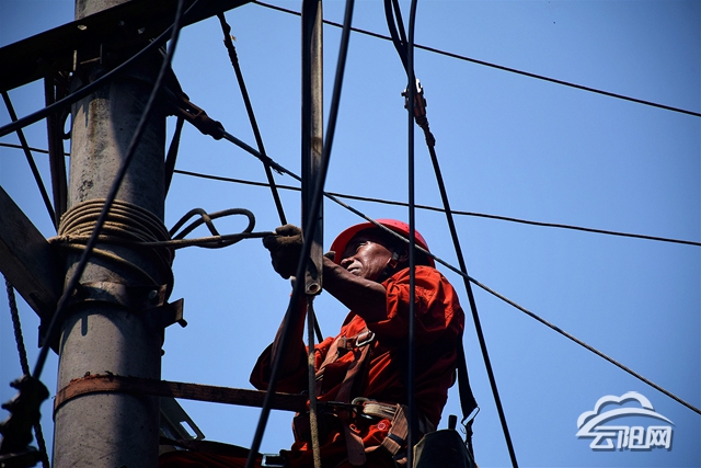 “一、二、三,使勁!”被繩子捆著的變壓器通過輪滑牽引,一步步地往上“爬”,在地面牽拉的工人身體往后傾斜,雙手抓住繩索,奮力牽拉,不由地喊起了口令。而構(gòu)架上的兩名搶修工人頭頂烈日,腳踏電桿,熟練地進(jìn)行拆線、擰螺絲、固定變壓器等操作……三四個(gè)小時(shí)的作業(yè),他們厚重的工作服已被汗水浸透。中午1點(diǎn)左右,電來了!居民又能享受到空調(diào)帶來的清涼,而搶修工人們收拾了東西,簡單吃過中飯,又將趕往下一個(gè)地方。