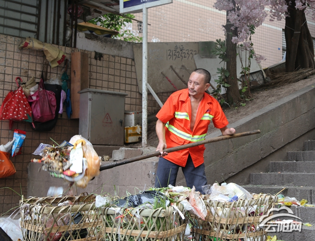 這名環(huán)衛(wèi)工人叫方敘安,今年57歲,因一次意外事故,手部不能像正常人一樣活動。但他并沒有申請吃低保,而是干起了環(huán)衛(wèi)工。“很多人嫌臟,怕臭,不愿意做環(huán)衛(wèi)工人,但是我不怕,我還做得動,能靠勞力養(yǎng)活自己,就不去麻煩政府。”說著,方敘安吃力而又熟練地用鐵鏟撈起垃圾,放到垃圾車上。