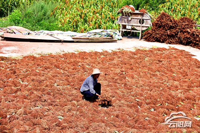 近幾天來,每天清晨,鳳凰村的村民們便背起背簍,拿著鐮刀,來到高粱地里收割高粱?!斑@段時間天氣太熱,我們就在早上5點來收高粱?!贝迕駞抢杳髡f。