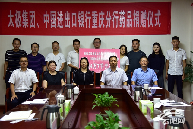 云陽網訊(記者 段斯斯)情系百姓健康,關愛貧困群眾。9月2日,由中國進出口銀行重慶分行“牽線”,太極集團向云陽紅十字協會捐贈33個品規、價值4.7萬元的藥品。