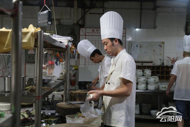 三峽風大酒店相關負責人介紹,目前后廚部共十六人,他們常年在高溫爐火邊掂鍋、掌勺,配菜,冬日里油煙熏人,夏日里炙熱難耐,希望顧客在等待美食的時候多一點耐心和理解,少一份煩躁,廚師們正在盡力為大家準備美食。