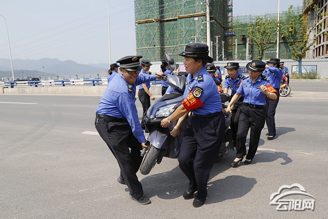 6日上午,縣城市管理綜合行政執法支隊在北部新區、紫荊加油站至云陽客運中心等地進行嚴格執法。一路上,記者看到不少市民將摩托車、貨車、轎車停放在道路兩側,民警也對駕駛員進行了處罰,引導告知駕駛員應當遵守交通秩序,對于沒有駕駛員在現場的車輛進行拖移。