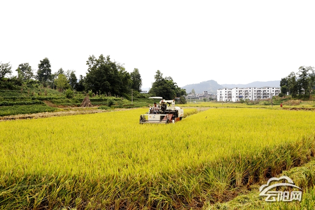 云陽網訊(記者 王彬彬)近日,在路陽鎮水稻收割現場,村民駕駛著聯合收獲機收割稻谷。