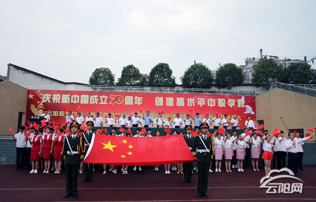 云陽網訊(記者 劉興敏 通訊員 張曉林)“我們,是中華兒女,我們,是華夏子孫;我們,聆聽中國神話,我們,銘記盤古傳說;我們,熟讀先祖哲學……”9月9日,職教中心5000余名師生和家長代表集體朗誦《我們只信仰祖國》,拉開了“我和我的祖國”主題宣傳活動暨秋季開學典禮的序幕。校長劉紅寄語師生要有“愛國情懷”;要培育工匠精神;要學安全,懂安全;要學會感恩。
