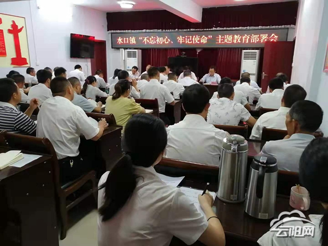云陽網訊(記者 丁齊 通訊員 易守菊)近日,水口鎮召開“不忘初心、牢記使命”主題教育工作專題部署會議。傳達學習習近平總書記在“不忘初心、牢記使命”主題教育工作會議上的重要講話精神,貫徹落實中央、市、縣“不忘初心、牢記使命”主題教育工作會議精神,對開展主題教育進行安排部署。機關全體職工、各村(社區)四職干部及鎮屬單位負責人70余人參加了主題教育活動。