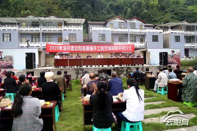 云陽網訊(記者 鄭紅均)非遺助推扶貧,技藝編織夢想。9月24日,魯渝共建外郎藤編技藝非遺扶貧培訓班在泥溪農耕故土園開班,有建卡貧困戶、留守婦女、下崗職工、失業人員等共50余學員參加了開班儀式。