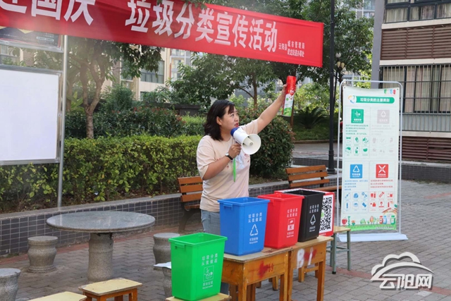 云陽網訊(實習生 洪琳 馬藝航 )為深入推進生活垃圾分類工作,倡導綠色環保生活方式,讓垃圾分類融入日常生活,9月30日,由縣城管局主辦的“喜迎國慶”垃圾分類宣傳活動在我縣開展。