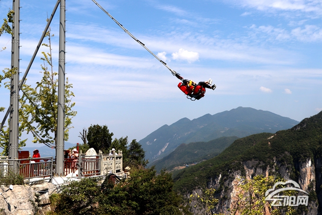 云陽網訊(記者 段斯斯 鄧庭庭)10月1日,云陽龍缸5A風景區新開放懸崖秋千和云端飛車兩個新的游樂項目,為游客帶來更加有趣、刺激的游樂體驗。
