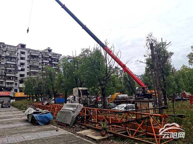 云陽網訊(記者 王彬彬)10月8日,縣城市管理綜合行政執法支隊對石來運轉公園綠化帶的一廢棄塔吊進行清除,同時對公園的建筑垃圾也進行了清除。