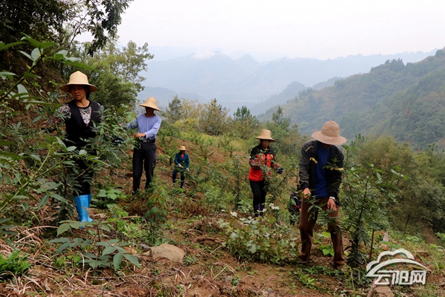 云陽網訊(實習生 劉浮生 劉超)近日,記者來到云陽鎮桐盛村花椒基地,基地負責人胡勤倫正帶領工人對花椒樹進行管理。