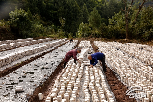 盤龍街道旺龍村村民正在種植黑木耳菌棒