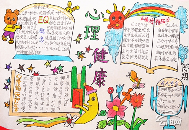 為培養學生健全的人格和良好的個性心理品質,新陽小學堅持“三個面向”抓好心理健康教育培訓。面向家長開展心理健康培訓,引領家長要及時發現問題,要能夠為孩子解疑答惑,要多讓孩子接觸社會,要給孩子創造一個健康的心理環境,真正關注孩子心理健康;面向教師開展心理健康培訓,讓老師們了解正常心理和異常心理的區別,并通過身邊的實例,引導老師學會調控情緒、穩定情緒、陶冶性情、注意完善自己的人格等,以快樂心境投入教育教學;面向學生開展不同形式的培訓,利用主題班會、黑板報、手抄報、集體輔導等形式讓學生了解和掌握心理健康教育的內容,認識異常心理的危險性,從而心向陽光,滿滿正能量。