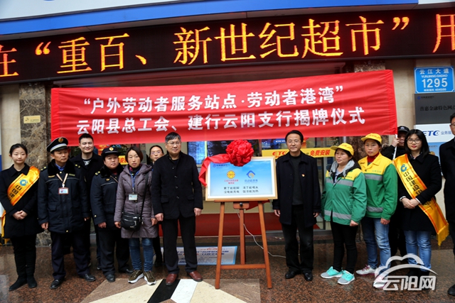 云陽(yáng)網(wǎng)訊(記者 鄭紅均 鮮名揚(yáng))12月11日,縣總工會(huì)與建行云陽(yáng)支行舉行“戶外勞動(dòng)者服務(wù)站點(diǎn)·勞動(dòng)者港灣”揭牌儀式,為冬日的云陽(yáng)增添一抹暖色。