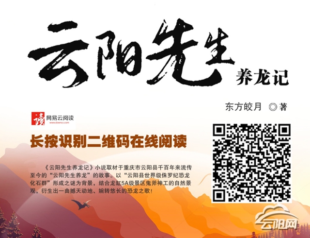 云陽網訊 近日,普安云陽龍、磨刀溪三峽龍驚艷披露。云陽恐龍化石再次填補世界空白!以云陽恐龍為素材的本土科幻小說《云陽先生養龍記》也同步在網易云閱讀、起點中文網、晉江文學城進入火熱連載階段了!