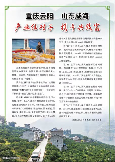 開展東西部扶貧協作是黨中央、國務院推動區域協調發展、協同發展、共同發展的重大部署。2010年,西部的重慶云陽縣和東部的山東威海市結了“姻緣”。