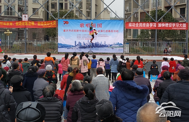 云陽網訊(記者 何競嘉)近日,由市委宣傳部、市文化和旅游發展委員會主辦的“歌唱祖國——重慶市慶祝新中國成立70周年送演出進基層活動”走進青龍街道亮水坪社區,將免費文化大餐送到了群眾家門口。