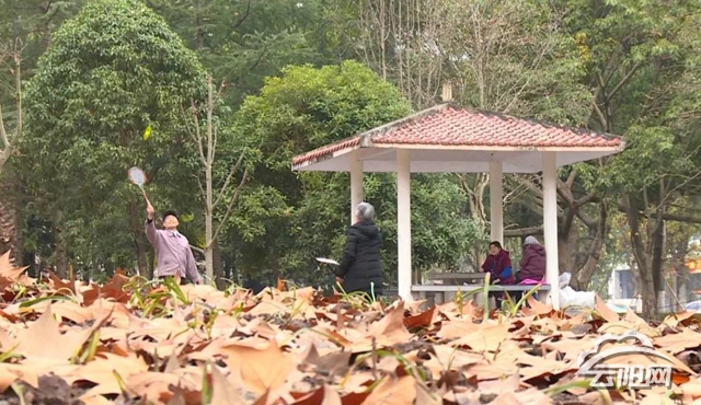 步道寬敞、杏葉飄零,相互交錯(cuò)、相映成趣