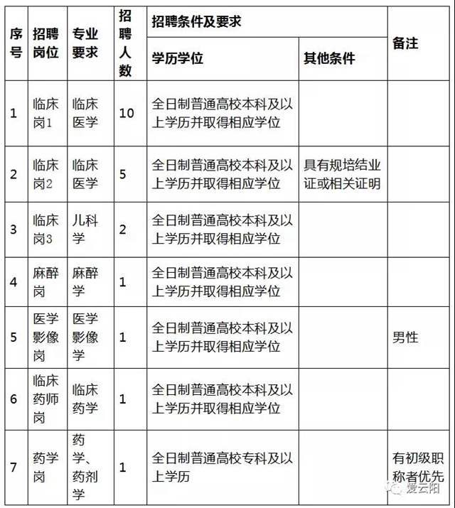 按照附件要求各崗位需是相應的全日制本科及以上或者全日制專科及以上學歷。其中規培生需取得規培結業證或相關規培證明。