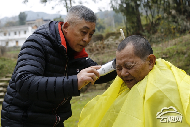 1月1日,葉正泉放棄回主城與家人團聚的機會,抓住冬日難得的好天氣,背上一個寫著“為人民服務(wù)”的理發(fā)包,朝著村里闕煥莫老人家走去。