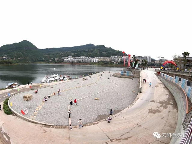 四方井碼頭結(jié)合廣場、河灘地、防洪堤,依水建景,用鵝卵石和河沙“還原”了老城長江沙灘……