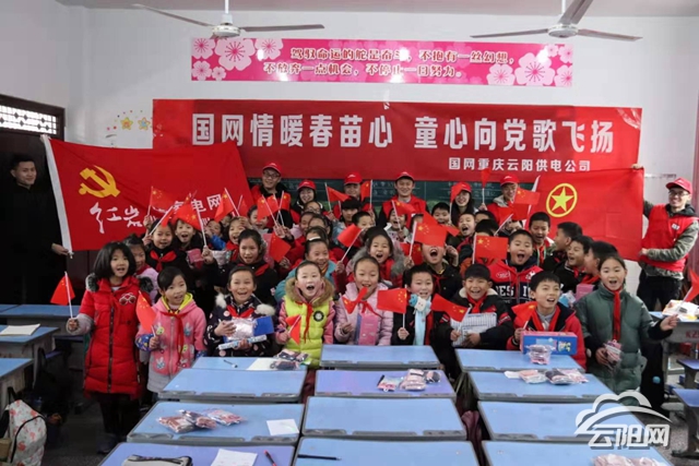 云陽網訊(實習生 洪琳)1月9日,國網重慶云陽供電公司開展“國網情暖春苗心、童心向黨歌飛揚”主題活動,給紅獅鎮彭詠梧小學留守兒童捐贈手套、保溫杯等物資,為他們送去冬日里的溫暖。