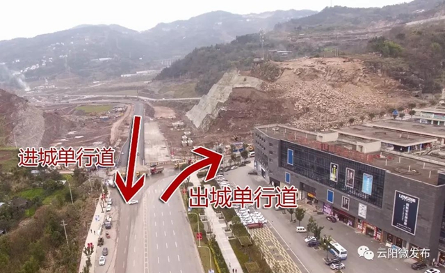 據施工單位介紹,本次即將要通車的道路是約1.7公里的單行雙車道,從云陽高速下道至億聯方向,所有車輛只能從這條道路進城。