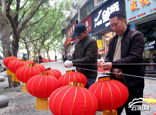 云陽網訊(記者 鄭紅均 鮮名揚)紅紅燈籠高高掛,歡天喜地迎佳節。1月15日,記者在云陽縣青龍路,看見工人們正在樹干上懸掛燈籠。