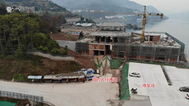 工作人員正在搭建臨時(shí)人行出入口,